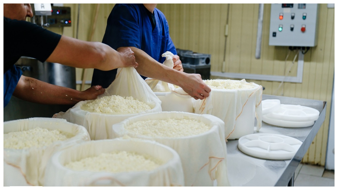 Затем мы заглянули в самое сердце сыроварни, где в реальном времени наблюдали за процессом изготовления сыра через обзорное окно. Мы узнали о тонкостях выдержки, о том, как важно высокое качество каждого ингредиента: от свежего молока и правильно подобранных ферментов до заквасок и точного температурного режима, который индивидуален для каждого сорта. Понимание всей этой кропотливой работы, поэтапной отработки технологии, объясняет, почему сыроварение – это настоящее искусство.